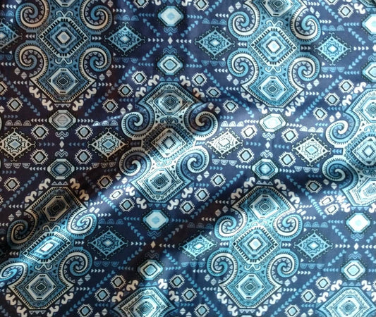 Wild Rag Blue and Silver Mayan Aztec Tribal Print Western Cowboy Neck Scarf Bandana by Double B Wild Rags