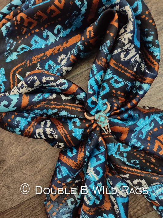 WILD RAG Tribal Aztec Turquoise, Rust Orange, White Western Cowboy Neck Scarf Bandana by Double B Wild Rags