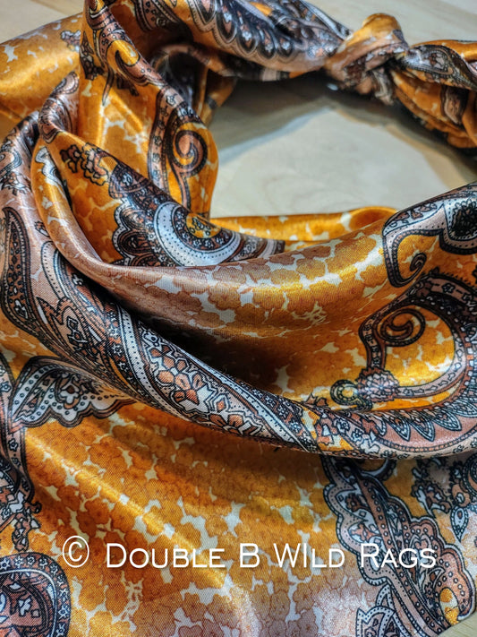 Wild Rag PAISLEY 121 Mustard Gold and Brown Cowboy Buckaroo Western Neck Scarf Bandanna by Double B Wild Rags