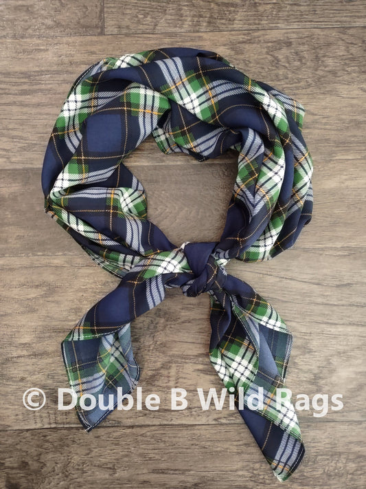 Wild Rag PLAID 1302 Navy Blue and Green Western Cowboy Neck Scarf Bandana by Double B Wild Rags