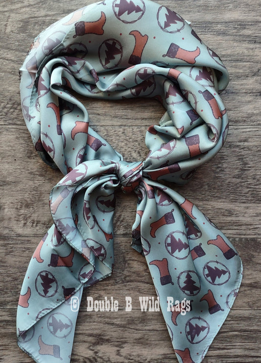 Wild Rag CHRISTMAS HOLIDAY Boots and Christmas trees Cowboy Western Neck Scarf Bandanna by Double B Wild Rags