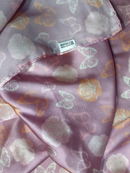 Wild Rag Roses and Butterflies Light Lilac Purple with peach roses Cowboy Western Neck Scarf by Double B Wild Rags