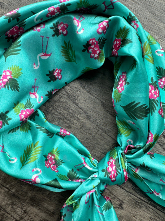 Wild Rag turquoise flamingo tropical Hawaiian Cowboy Western Neck Scarf Bandanna by Double B Wild Rags