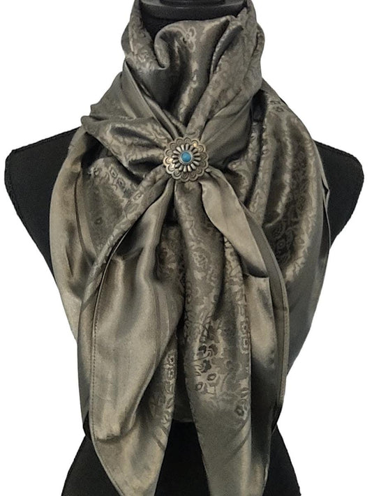 Antique Silver or Copper Brown Scalloped Edge Wild Rag Slide with Stone Center