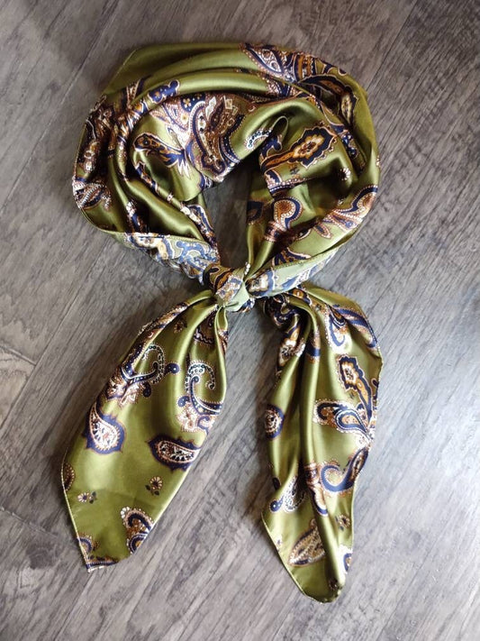Wild Rag Olive Green with Blue and Gold Paisley Print Western Cowboy Neck Scarf Bandana by Double B Wild Rags