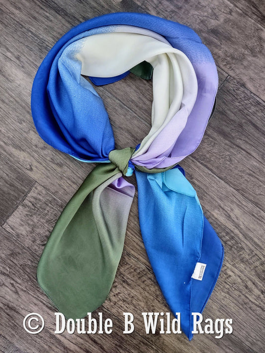 BARGAIN WILD RAG Ombre Dark Blue Purple and Green by Double B Wild Rags Bandana Western Neck Scarf Neckerchief