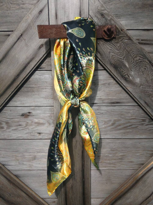 Wild Rag PAISLEY 114 Yellow Ethnic Stripe Cowboy Western Neck Scarf Bandanna by Double B Wild Rags