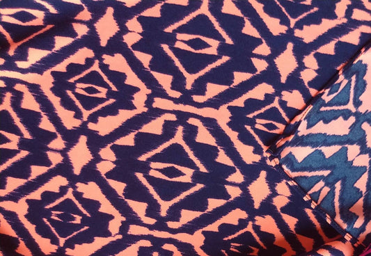 Wild Rag Bright Coral orange/pink and navy blue Southwest Aztec Print Cowboy Western Neck Scarf by Double B Wild Rags
