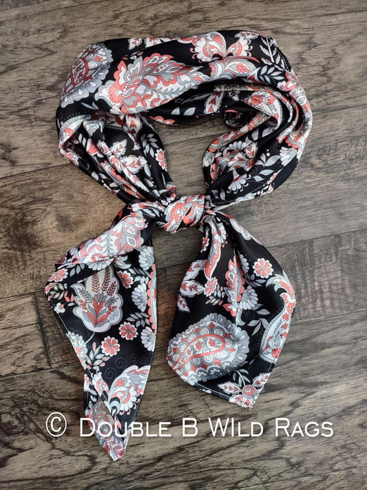 WILD RAG Paisley Vintage Black and Coral Pink Western Cowboy Neck Scarf Bandana by Double B Wild Rags
