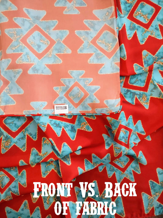 Wild Rag AZTEC 921 Red, Turquoise, and Gold Aztec Cowboy Western Neck Scarf Bandanna by Double B Wild Rags