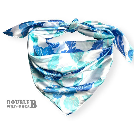 Wild Rag white and blue hibiscus floral Hawaiian Cowboy Western Neck Scarf Bandanna by Double B Wild Rags