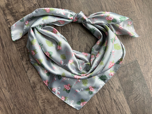 Wild Rag Silver Grey and Pink flamingo tropical Hawaiian Cowboy Western Neck Scarf Bandanna by Double B Wild Rags