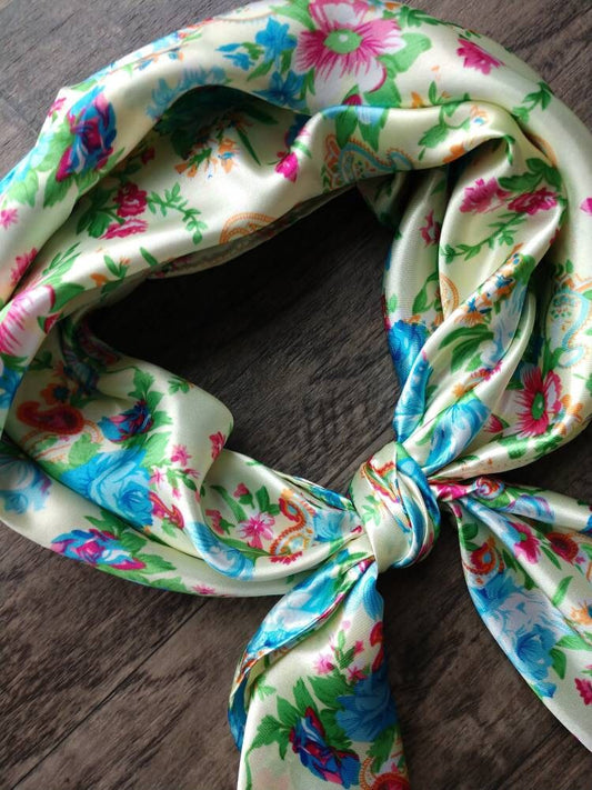 Wild Rag Pink, Blue, and Green Paisley Floral Cowboy Western Neck Scarf Bandanna by Double B Wild Rags