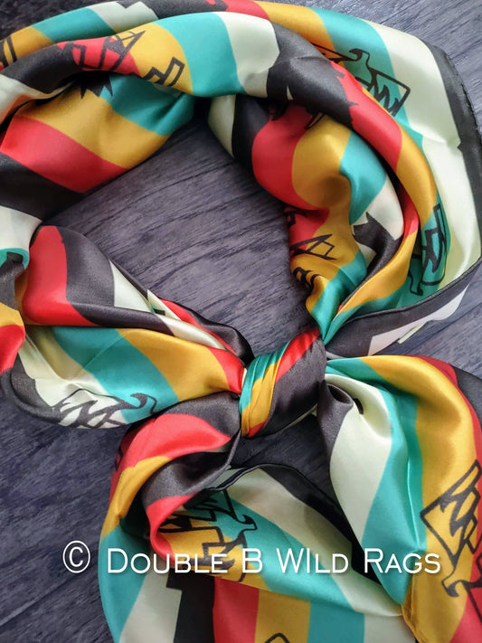 Wild Rag 100% SILK 805 Thunderbird Retro Serape Stripe Cowboy Western Neck Scarf Bandanna by Double B Wild Rags