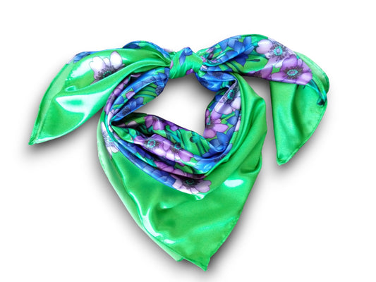 Wild Rag Bright Green with Purple Flowers Cowboy Western Neck Scarf Neckerchief Bandanna by Double B Wild Rags