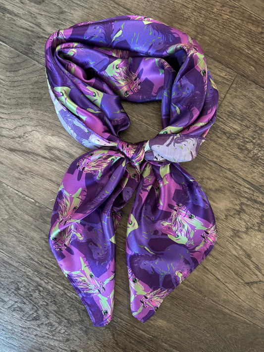 Silk Wild Rag Purple and Green Running Horse print by Double B Wild Rags