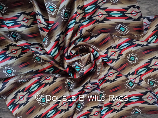 Wild Rag 100% SILK 821 Red, Brown, and Turquoise Aztec Cowboy Western Neck Scarf Bandanna by Double B Wild Rags