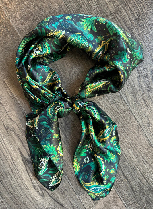 Wild Rag 100% SILK Emerald Green Gold and Black Floral Paisley Cowboy Neck Scarf Bandanna by Double B Wild Rags