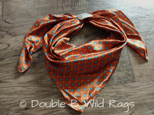 WILD RAG Blue Motif on Burnt Orange Cowboy Western Neck Scarf Bandanna by Double B Wild Rags