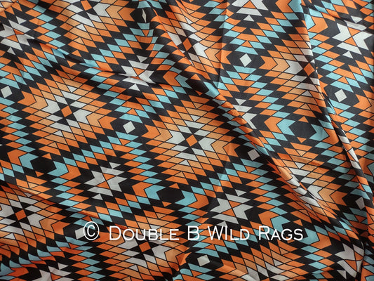 Wild Rag AZTEC 1010 Orange Light Blue and Black southwest Cowboy Western Neck Scarf Bandanna by Double B Wild Rags