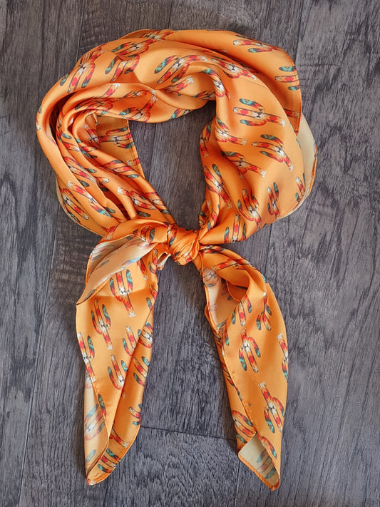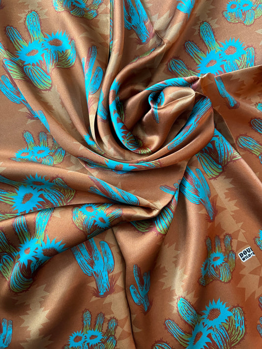 100% Silk Wild Rag “Rusty Cactus” by Double B Wild Rags dark rust orange, turquoise blue, light green