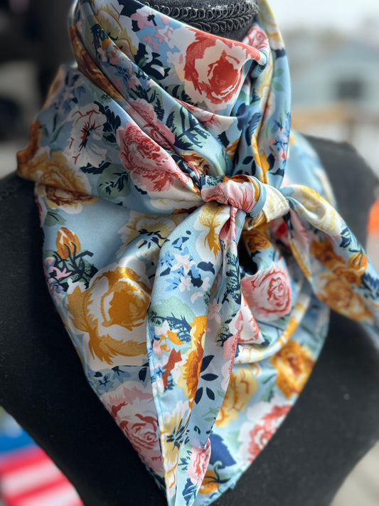 Wild Rag light blue and gold yellow rose Floral Cowboy Western Neck Scarf Bandanna by Double B Wild Rags