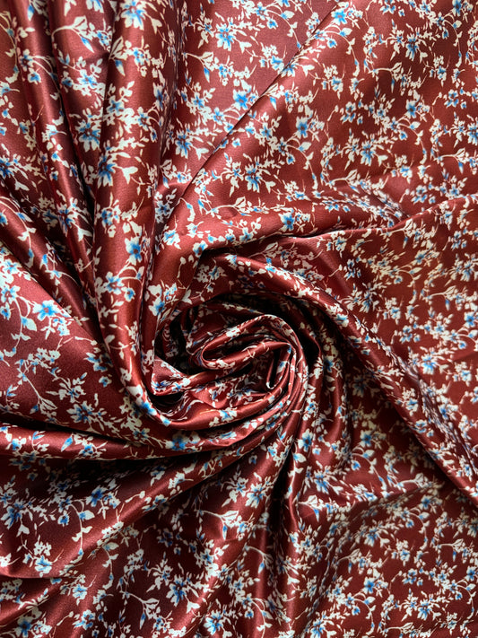 100% Silk Wild Rag Blue, Rust, Ivory, Brown floral by Double B Wild Rags