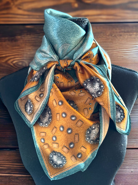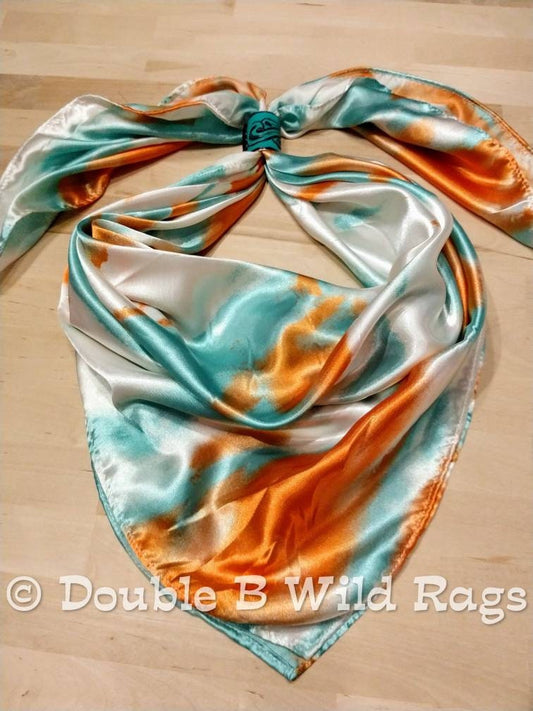 Wild Rag Orange and Light teal green Grunge Patina print Western Cowboy Neck Scarf Bandana by Double B Wild Rags