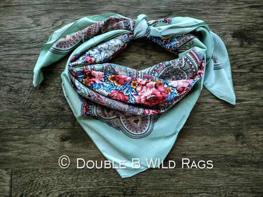 Wild Rag BARGAIN CORNER BC1108 Large 40"x40" Sage or Blue Roses Paisleys Cowboy Western Neck Scarf by Double B Wild Rags