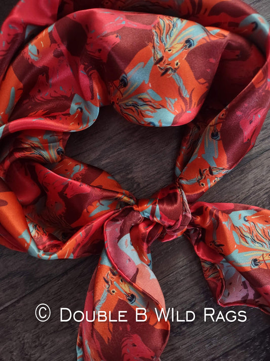Wild Rag 100% SILK 810 Red Running Horses Cowboy Western Neck Scarf Bandanna by Double B Wild Rags