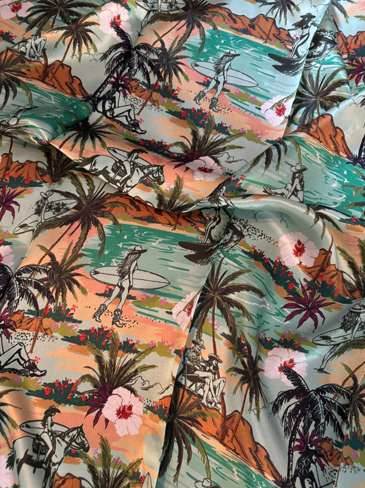 100% Silk Wild Rag Coastal Cowgirl Hawaiian green print by Double B Wild Rags