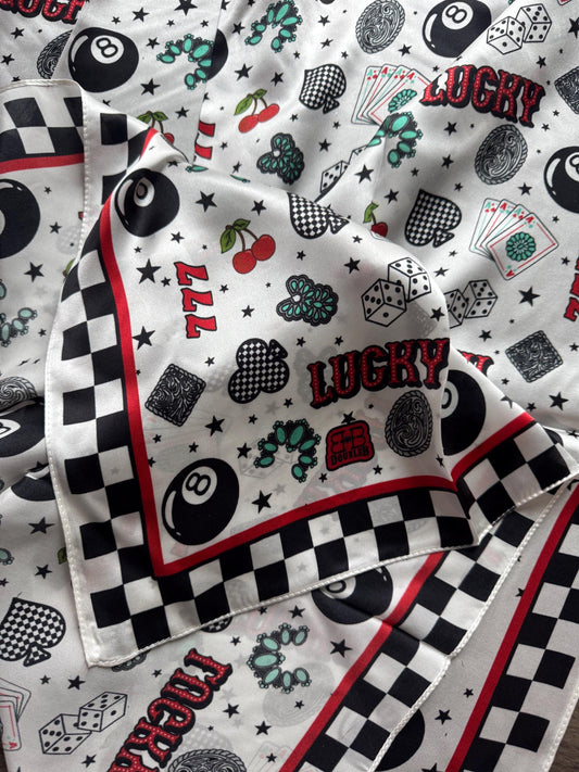 100% Silk Wild Rag Checkered Lucky 7's Casino by Double B Wild Rags