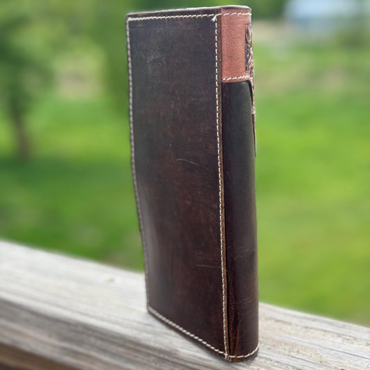 Men’s Western long wallet tooled floral details with smooth leather by Double B Wild Rags