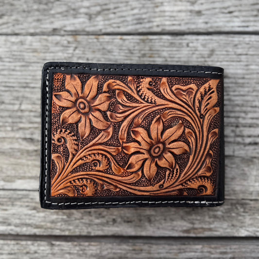 Men’s Western bi-fold wallet tooled sunflowers by Double B Wild Rags