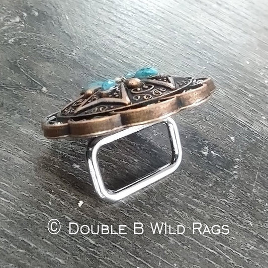 Wild Rag Copper Red or turquoise Thunderbird Concho Scarf Slide from Double B Wild Rags