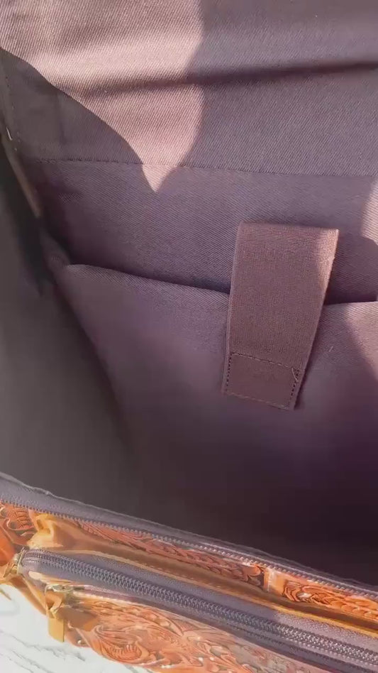 Fully Tooled Western Backpack Genuine Leather Diaper Bag Personal Item carry-on luggage by Double B Wild Rags