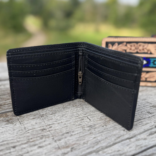 Men’s Western bi-fold Long Wallet tooled and Seed Bead details by Double B Wild Rags