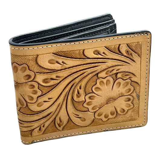 Men's Western bi-fold wallet tooled floral details by Double B Wild Rags