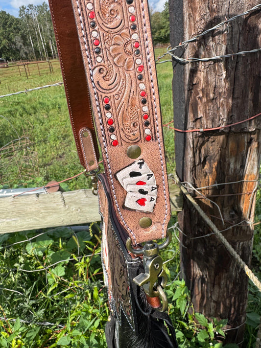 Genuine Western Cowhide Leather Purse with Ace Cards painted details and black fringe.