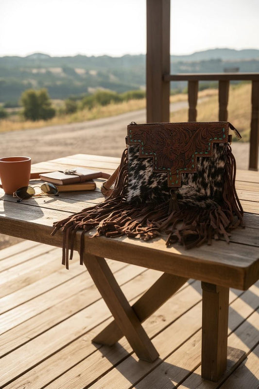 Western Fringe Purse Genuine Cowhide and Leather by Double B Wild Rags
