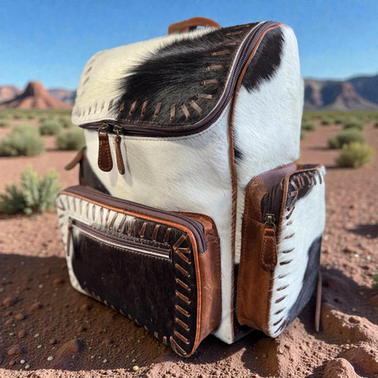 Genuine Western Cowhide Leather Backpack Diaper Bag Personal Item carry-on luggage by Double B Wild Rags