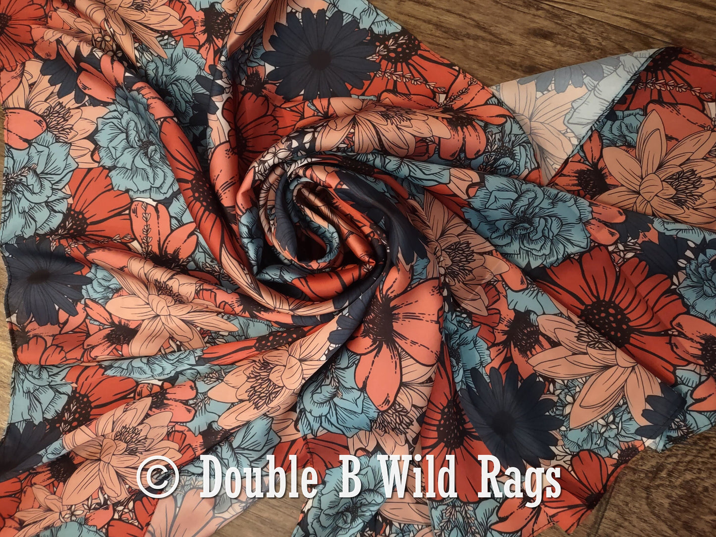 Wild Rag Blue and Coral Floral Cowboy Western Neck Scarf Bandanna by Double B Wild Rags