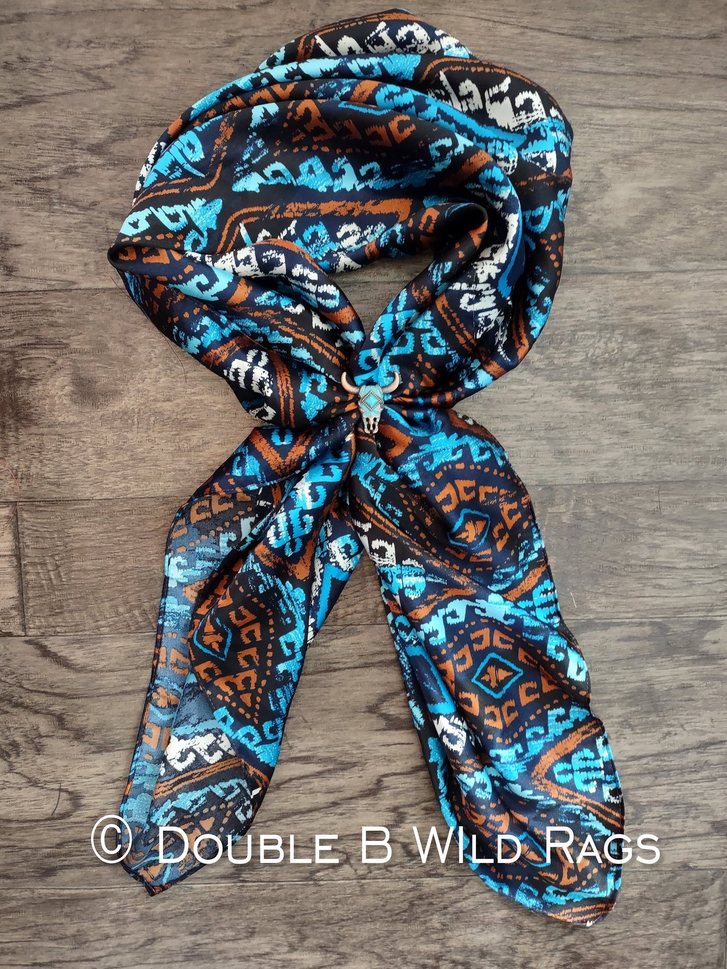 WILD RAG Tribal Aztec Turquoise, Rust Orange, White Western Cowboy Neck Scarf Bandana by Double B Wild Rags